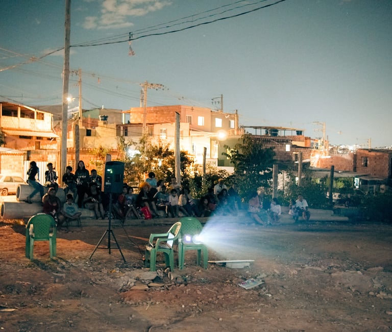 O Cine Dorothy é um projeto de exibição, que acontece na ocupações, vilas e favelas de Belo Horizonte, exibindo filme e propondo encontros e conversas para ver, lembrar e imaginar junto.